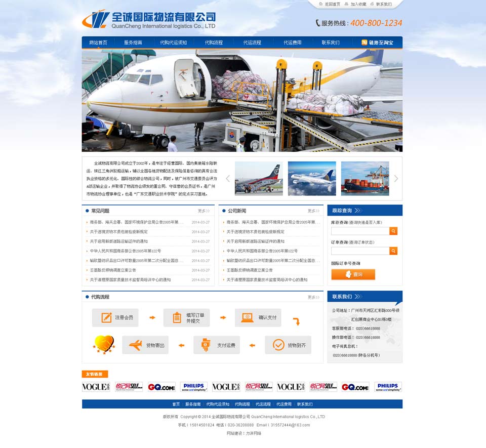項目名稱:全誠國際物流有限公司 簽定時間:2014-9-17 項目網址:http://www.quanchengexpress.com/ 項目簡介: 全誠國際物流有限公司是一家集中國采購、國際空運,海運、倉儲、包裝、清關送貨