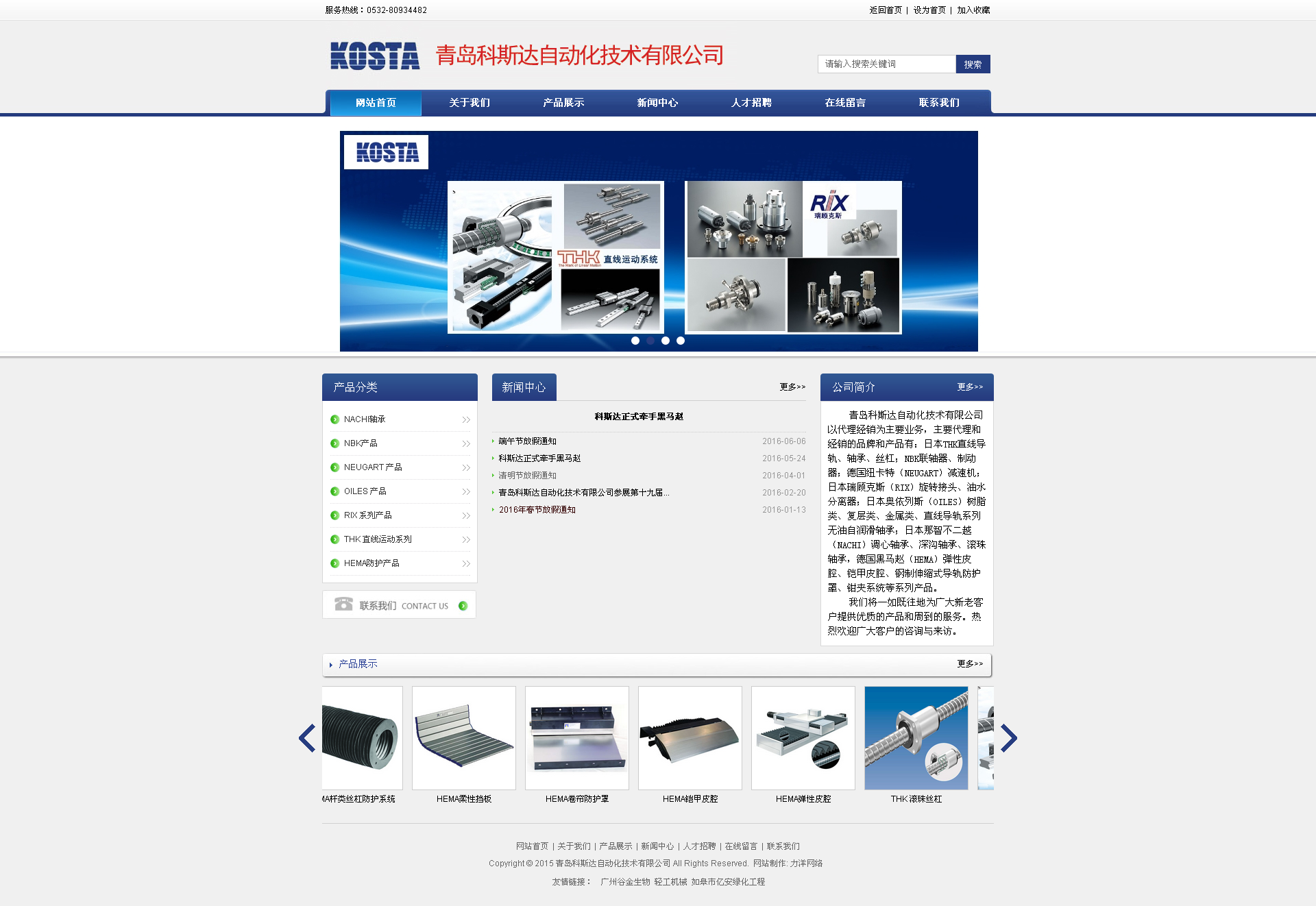 青島科斯達(dá)自動(dòng)化技術(shù)有限公司是THK在山東省唯一正規(guī)授權(quán)代理商,公司主營(yíng)直線導(dǎo)軌、滾珠絲杠、聯(lián)軸器、減速機(jī)、旋轉(zhuǎn)接頭等傳動(dòng)類產(chǎn)品,并自主研發(fā)單軸及多軸機(jī)械手、電動(dòng)推桿、高精度檢測(cè)裝置、自動(dòng)上下料、自動(dòng)抓取等系列非標(biāo)自動(dòng)化設(shè)備,為客戶提供一站...