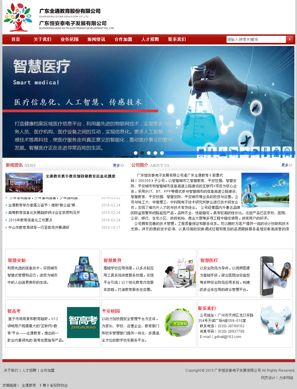 廣東恒安泰電子發(fā)展有限公司是廣東全通教育(股票代碼:300359)子公司,以智慧城市之智慧教育、平安校園、智慧安防、平安城市和智慧城市信息高速公路建設(shè)的互聯(lián)網(wǎng)+項(xiàng)目為核心業(yè)務(wù),采用BOT、BT、PPP等模式參與智慧城市的信息高速公路建設(shè)、智...