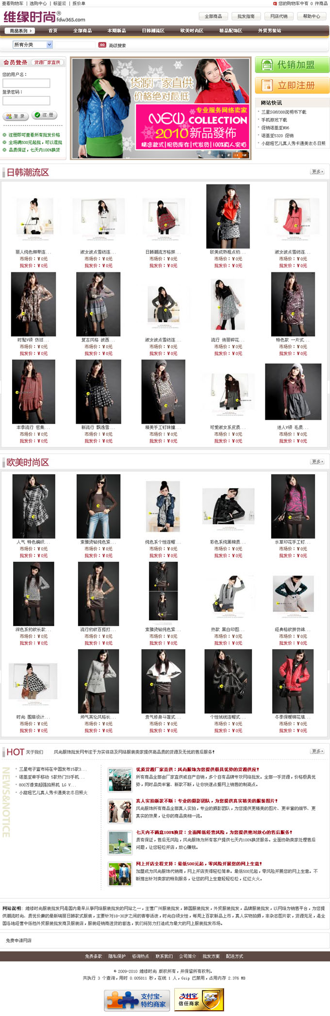 項(xiàng)目名稱:維緣時尚服裝批發(fā)網(wǎng)網(wǎng)站建設(shè)簽定時間:2009年12月29日網(wǎng)站首頁效果圖: