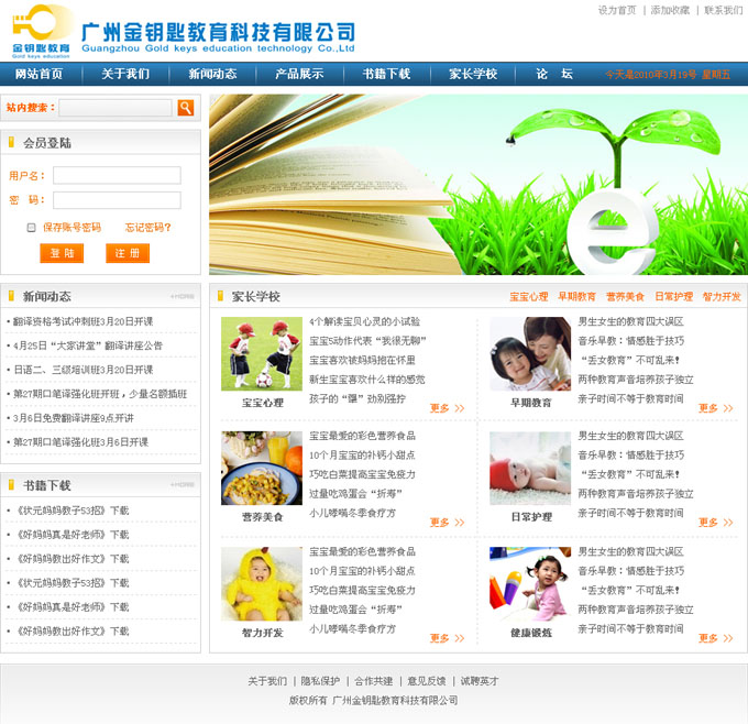 項目名稱:廣州金鑰匙教育科技有限公司網(wǎng)站建設(shè)簽定日期:2010年3月15日網(wǎng)站首頁設(shè)計效果: