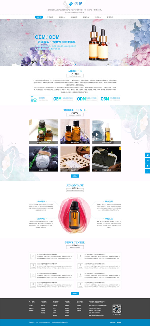 項(xiàng)目名稱:廣州佑揚(yáng)化妝品有限公司建網(wǎng)站 項(xiàng)目網(wǎng)址:www.youyanggz.com 公司簡(jiǎn)介: 廣州佑揚(yáng)化妝品有限公司是廣州專業(yè)的化妝品OEM/ODM企業(yè)之一。集化妝品生產(chǎn)、品牌方案制定、專業(yè)OEM、品牌注冊(cè)備案等服務(wù)。公司占地面積