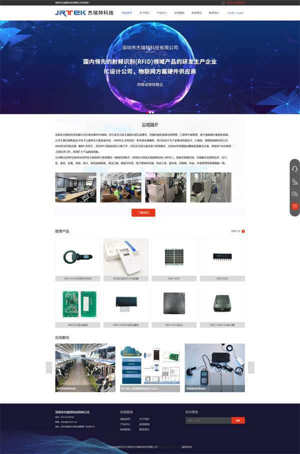 項(xiàng)目名稱(chēng):深圳市杰瑞特科技有限公司做網(wǎng)站 設(shè)計(jì)稿: 深圳市杰瑞特科技有限公司專(zhuān)業(yè)從事RFID領(lǐng)域,芯片及各式讀卡器的開(kāi)發(fā)以及整合,為國(guó)內(nèi)領(lǐng)先的畜牧業(yè)管理,門(mén)禁停車(chē)場(chǎng)管理,地下物聯(lián)網(wǎng)方案的供應(yīng)商。公司主要以銷(xiāo)售及設(shè)計(jì)電子元器件為主要營(yíng)業(yè)