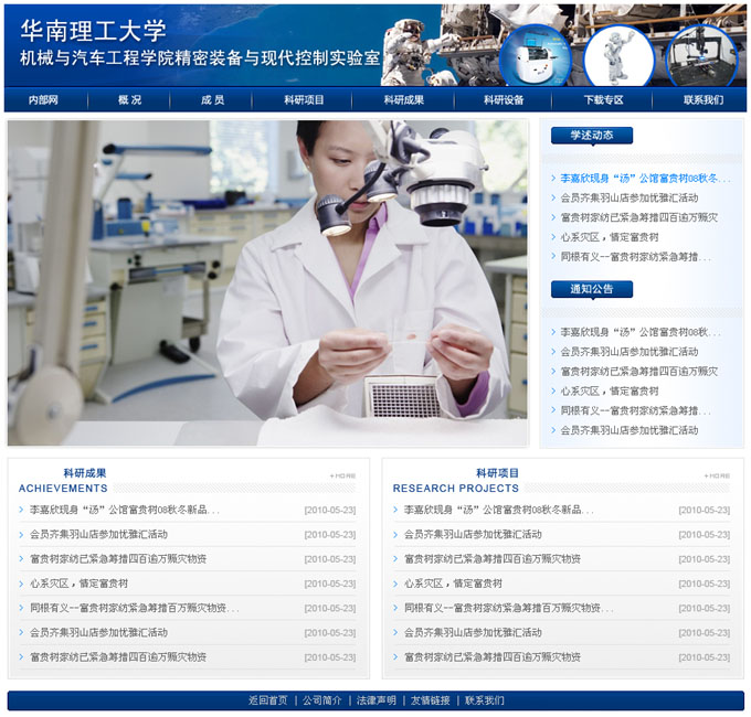 項目名稱:華南理工大學機械與汽車學院精密裝備與現(xiàn)代控制實驗室網(wǎng)站建設(shè)