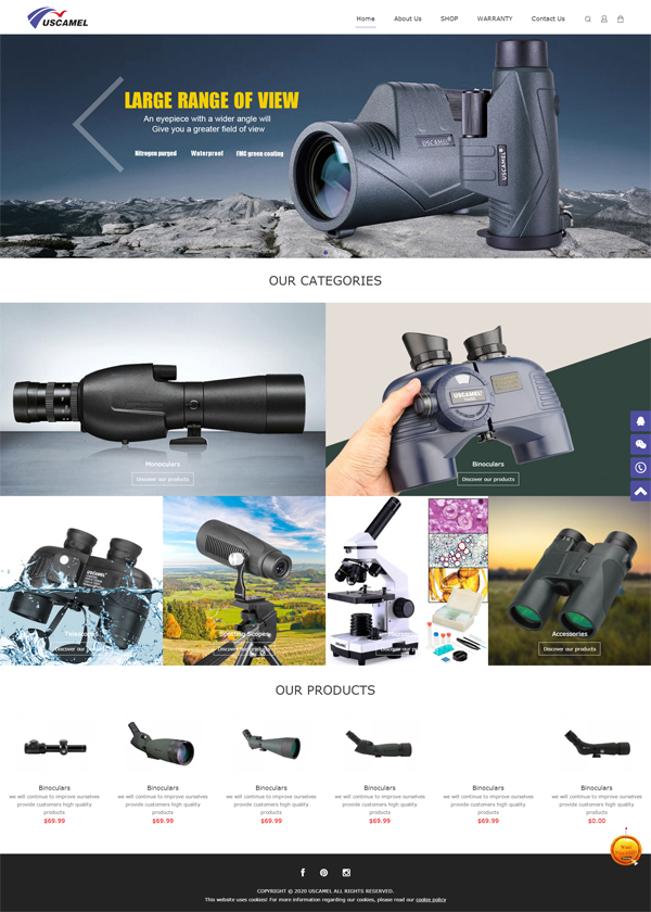 USCAMEL specializes in the production of motion optics products, providing high-quality, reliable, affordable sports optical products and the market's best customer service experience. USCAMEL product lines enhance the enjoyment of every outdoor and indoor activity, including nature study, hunting, fishing, boating,bird watching and stargazing etc.