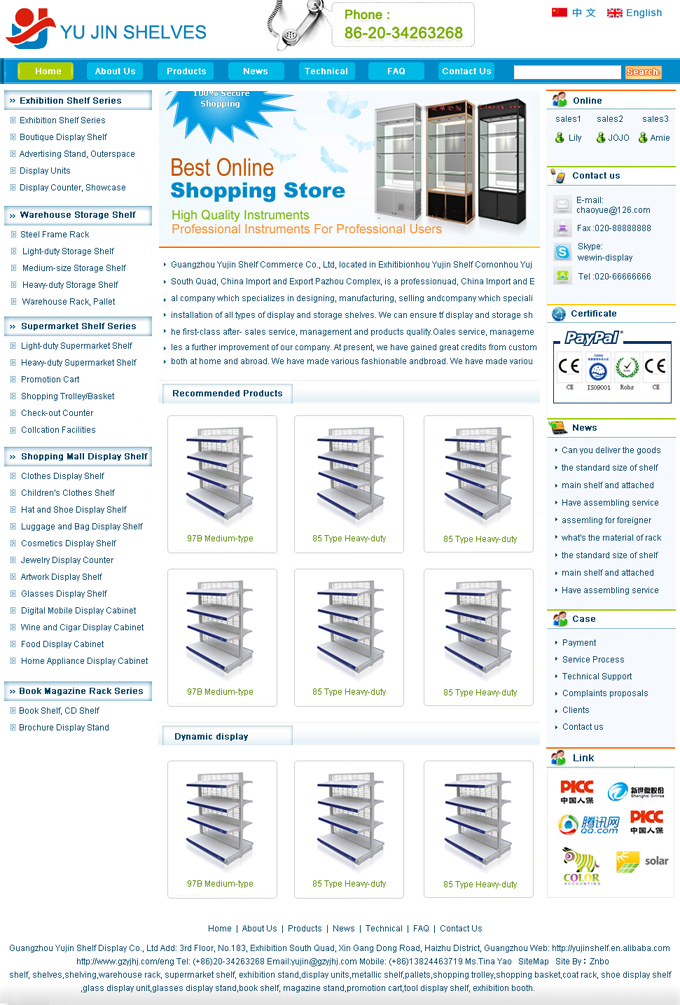 項目名稱:廣州宇金貨架有限公司外貿(mào)營銷網(wǎng)站建設(shè)簽定日期:2010年8月20日廣州市宇金貨架有限公司位于廣州國際會展中心琶洲會展南四路、人杰地靈交通便利,是一家專注致力于展柜和貨架設(shè)計、研發(fā)、制造、銷售及售后長期綜合服務(wù)的終端生產(chǎn)商。公司擁有