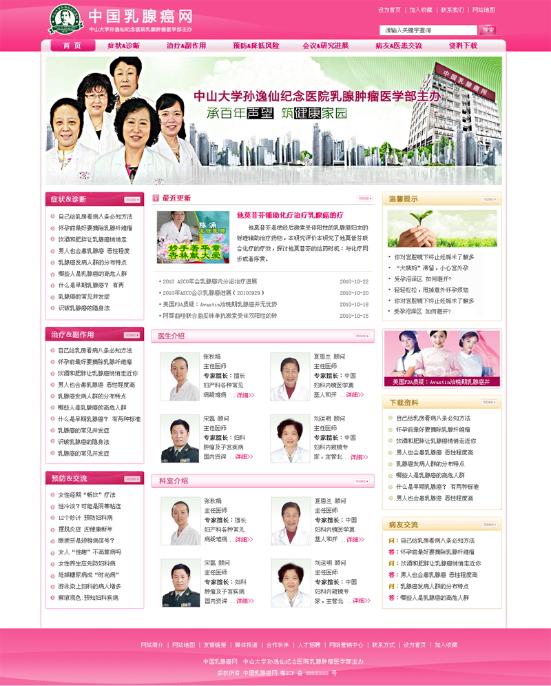 項目名稱:中山大學孫逸仙紀念醫(yī)院乳腺腫瘤科網(wǎng)站建設簽定日期:2010年10月30日網(wǎng)站首頁設計稿:(縮略圖)