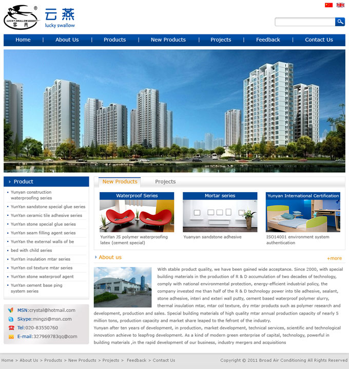 項(xiàng)目名稱:廣東云燕特種水泥建材有限公司網(wǎng)站建設(shè)簽定日期:2011年11月24日網(wǎng)址:http://www.yunyanchina.com/廣東云燕特種水泥建材有限公司的“云燕”品牌始創(chuàng)于1993年,總部設(shè)于廣東廣州。