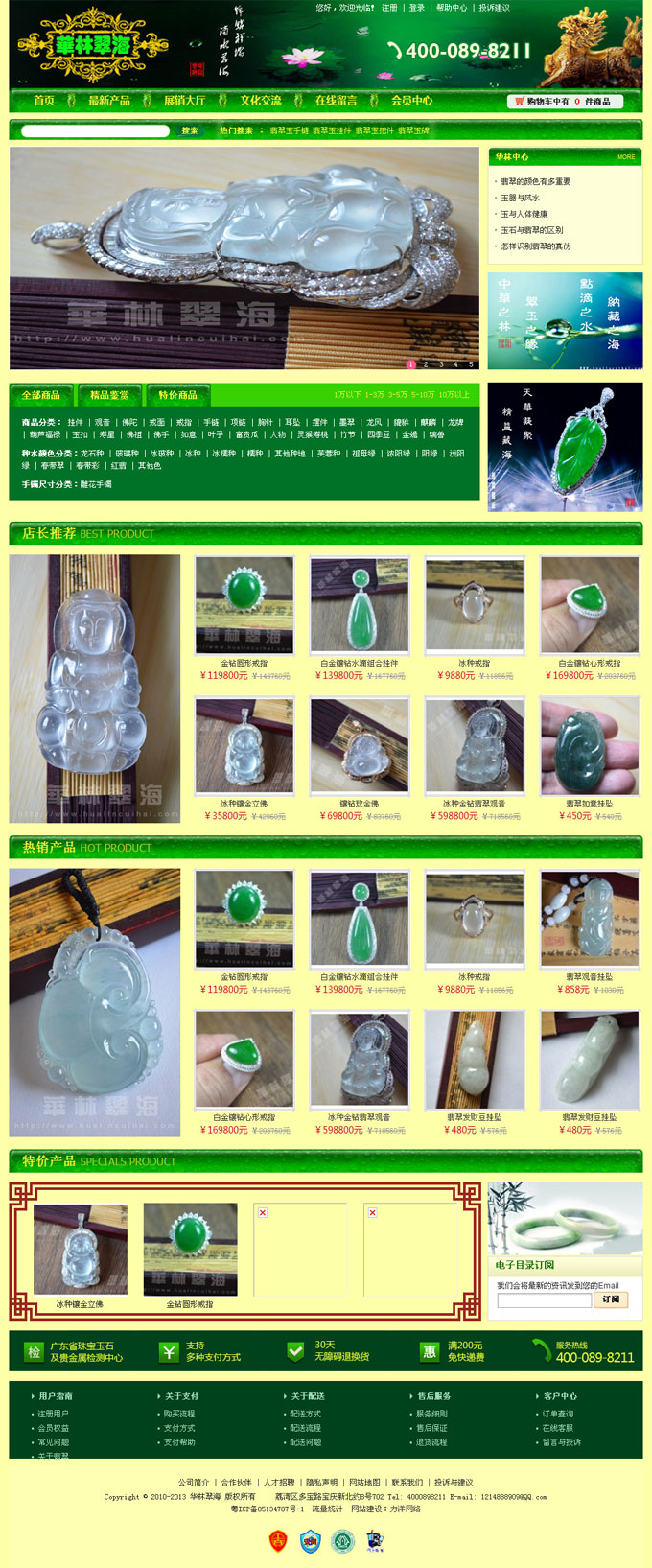 項(xiàng)目名稱:華林翡翠網(wǎng)站建設(shè)簽定日期:2011年12月6日網(wǎng)址:http://www.hualincuihai.com/華林翠海股份有限公司成立于2008年以著名的華林玉器街為依托,成長(zhǎng)于充滿古典魅力與現(xiàn)代活力的廣州市。專門(mén)經(jīng)營(yíng)各種翡翠飾品: