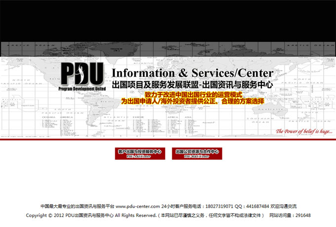 項(xiàng)目名稱(chēng):PUD出國(guó)服務(wù)資訊中心網(wǎng)站建設(shè)簽定日期:2012年9月10日網(wǎng)址:http://www.pdu-center.com