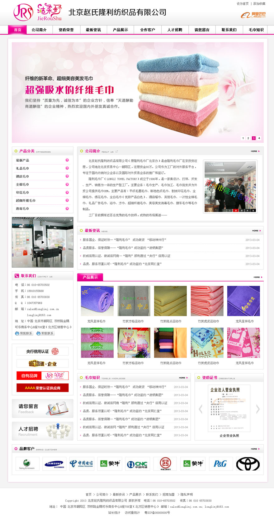 北京趙氏隆利紡織品有限公司(原隆利毛巾廠北京辦)是由隆利毛巾廠在京投資注冊,公司地處北京貿(mào)易中心--朝陽區(qū),注冊資金80萬。公司作為工廠的對外服務(wù)平臺,專注于國內(nèi)內(nèi)銷對公業(yè)務(wù)以及國際對外貿(mào)易業(yè)務(wù)的推廣和簽訂。