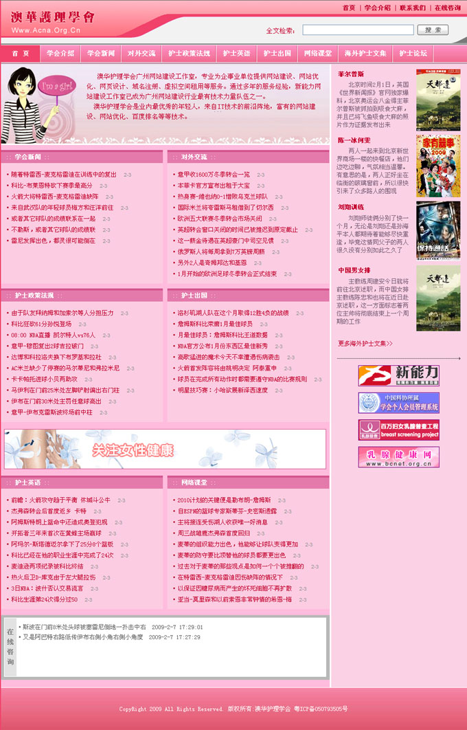網(wǎng)站名稱:澳洲澳華護(hù)理學(xué)會測試網(wǎng)址:www.51action.com.cn交付測試時間:2009-02-7首頁效果: