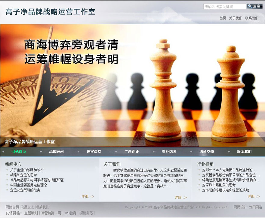 項目名稱:高子凈品牌戰(zhàn)略運營工作室網(wǎng)站建設(shè)簽定日期:2013年4月23日網(wǎng)址:http://www.gaozijing.com品牌是當今時代背景下,企業(yè)發(fā)展戰(zhàn)略的指南針,而不是戰(zhàn)略棋子;品牌是聚焦的奇點;品牌的定位關(guān)系到全方位的管理布局和資