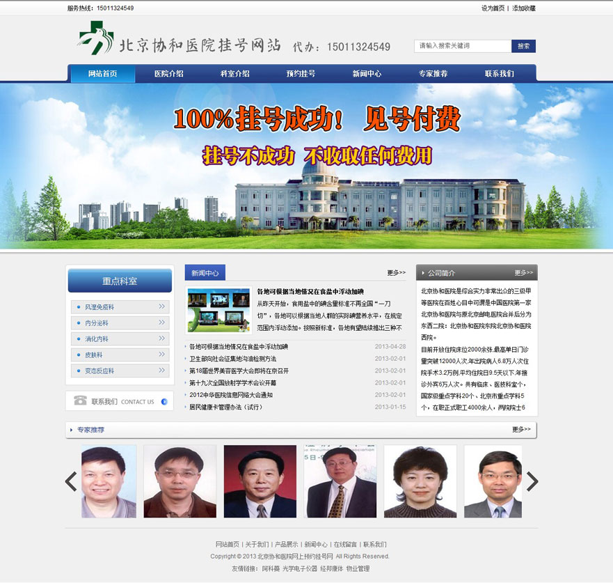 項目名稱:北醫(yī)三院掛號網(wǎng)網(wǎng)站建設(shè)簽定日期:2013年4月23日網(wǎng)址:http://www.bjxhgh001.com北京協(xié)和醫(yī)院是綜合實力非常出眾的三級甲等醫(yī)院在百姓心目中可謂是中國醫(yī)院第一家北京協(xié)和醫(yī)院與原北京郵電醫(yī)院合并后分為東西二院: