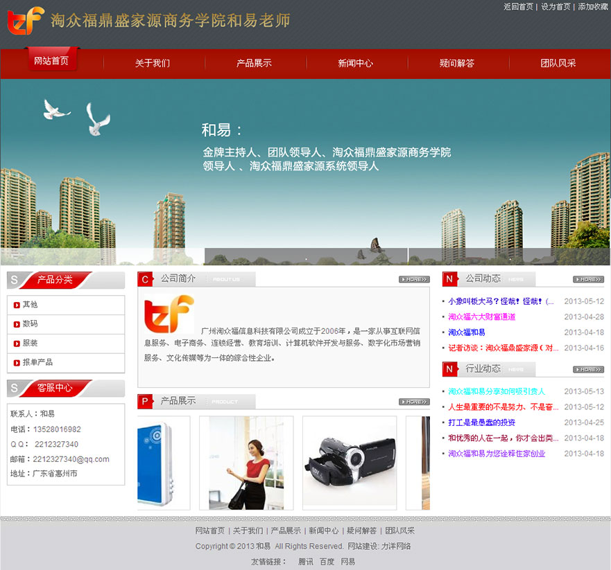 項目名稱:廣州淘眾福信息科技有限公司網(wǎng)站建設(shè)簽定日期:2013年5月10日網(wǎng)址:http://www.tofuze.com淘眾福鼎盛家源是建立在,一言九鼎、追求誠信之上的一支團隊。鼎盛家源有著共同目標、共同價值觀的隊伍!家園所有成員大家相互