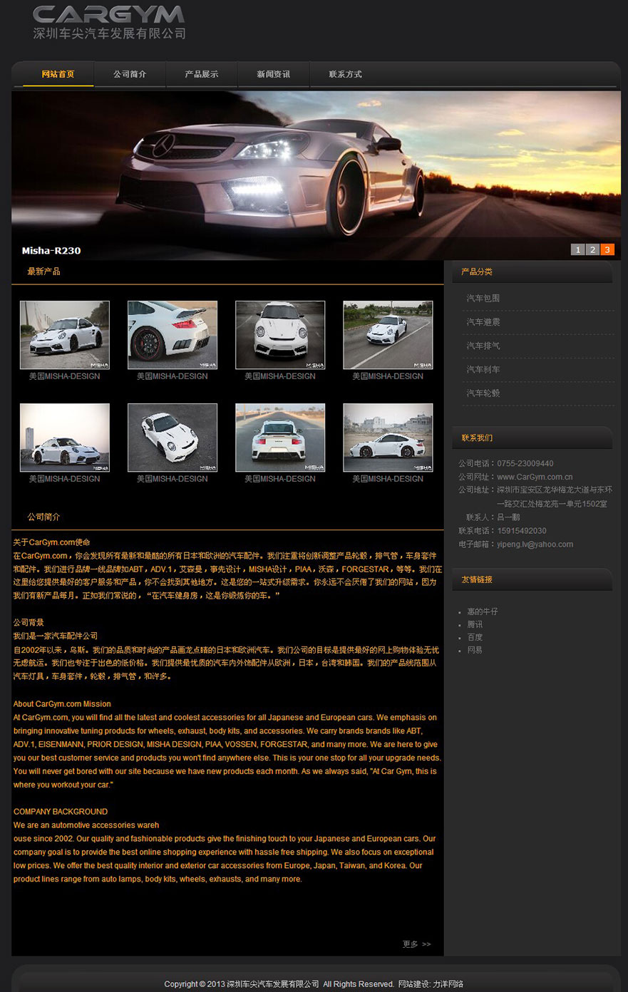 項(xiàng)目名稱:深圳車尖汽車發(fā)展有限公司網(wǎng)站建設(shè)簽定日期:2013年5月22日網(wǎng)址:http://www.cargym.com.cn在CarGym.com,你會(huì)發(fā)現(xiàn)所有最新和最酷的所有日本和歐洲的汽車配件。我們注重將創(chuàng)新調(diào)整產(chǎn)品輪轂,排氣管,車身