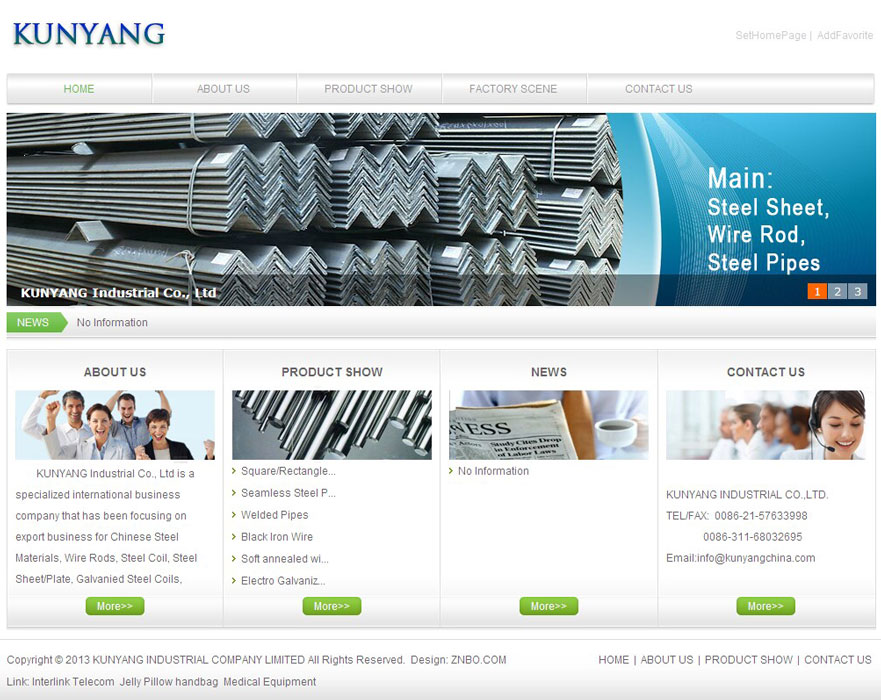 KUNYANG Industrial Co., Ltd. is located in the north of China, the transportation is very convenient. After decades of rapid development, our company has developed subordinate branch factory, which is Steel serious, Iron wire, Metal ingots, industry.