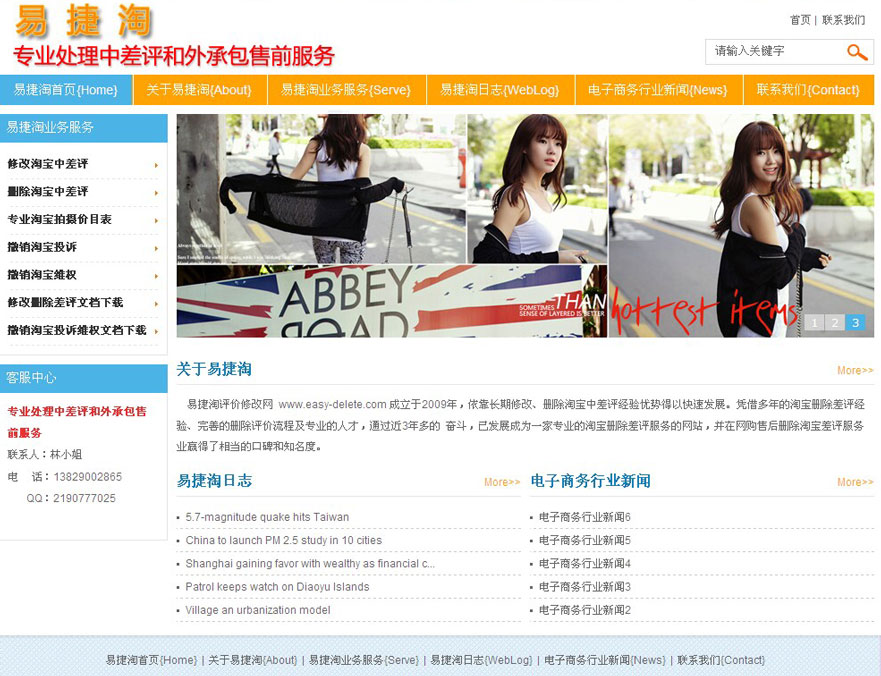 易捷淘評價修改網(wǎng) www.easy-delete.com 成立于2009年,依靠長期修改、刪除淘寶中差評經(jīng)驗優(yōu)勢得以快速發(fā)展。憑借多年的淘寶刪除差評經(jīng)驗、完善的刪除評價流程及專業(yè)的人才,通過近3年多的 奮斗,已發(fā)展成為一家專業(yè)的淘寶刪除差評服務(wù)的網(wǎng)站,并在網(wǎng)購售后刪除淘寶差評服務(wù)業(yè)贏得了相當(dāng)?shù)目诒椭取?br />