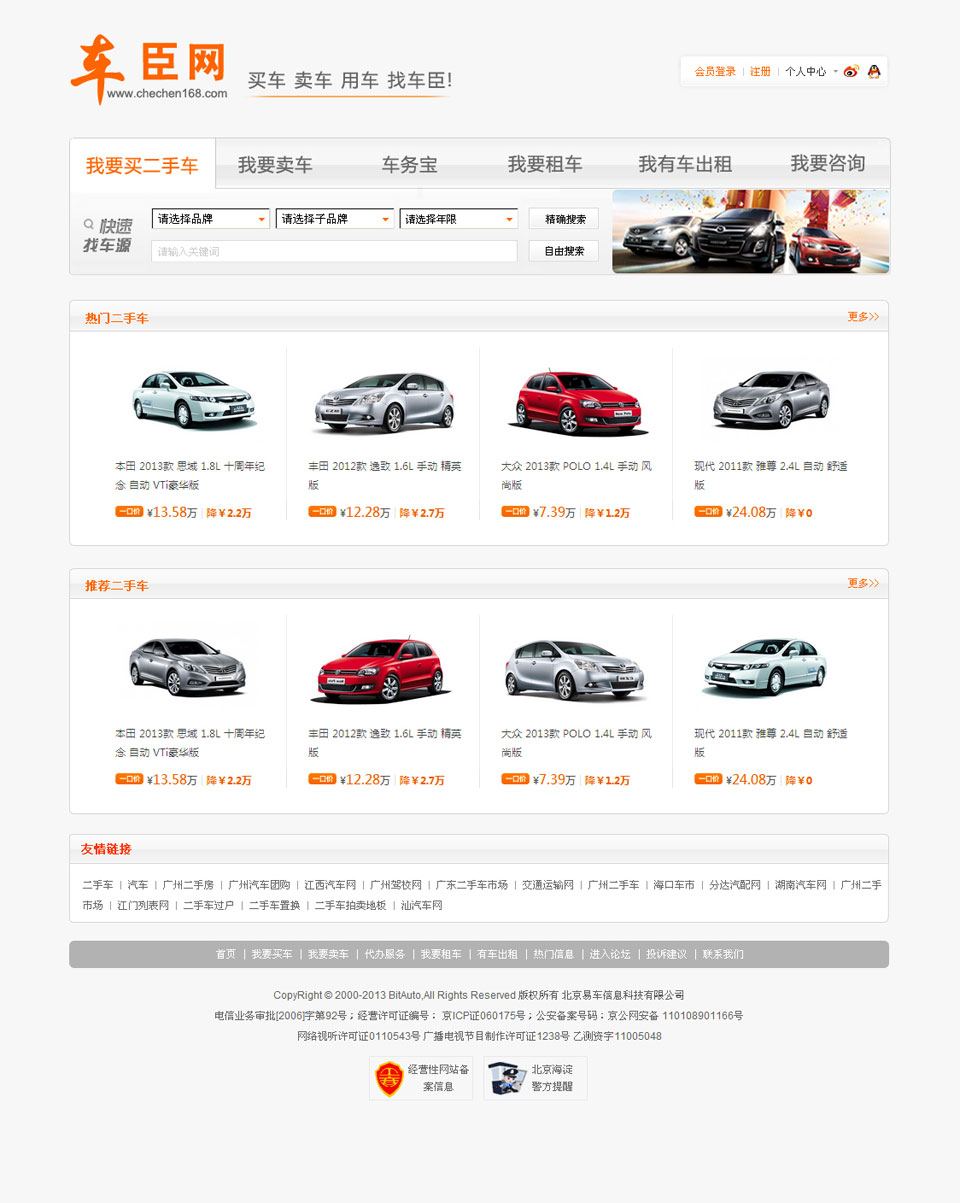 項目名稱:車巨網(wǎng)網(wǎng)站設(shè)計簽定日期:2013-8-12項目網(wǎng)址:www.chechen168.com網(wǎng)站簡介:車巨網(wǎng)以“不賺差價”的商業(yè)定位,配套“車務(wù)寶”專業(yè)二手車檢測系統(tǒng),開創(chuàng)并領(lǐng)導(dǎo)中國二手